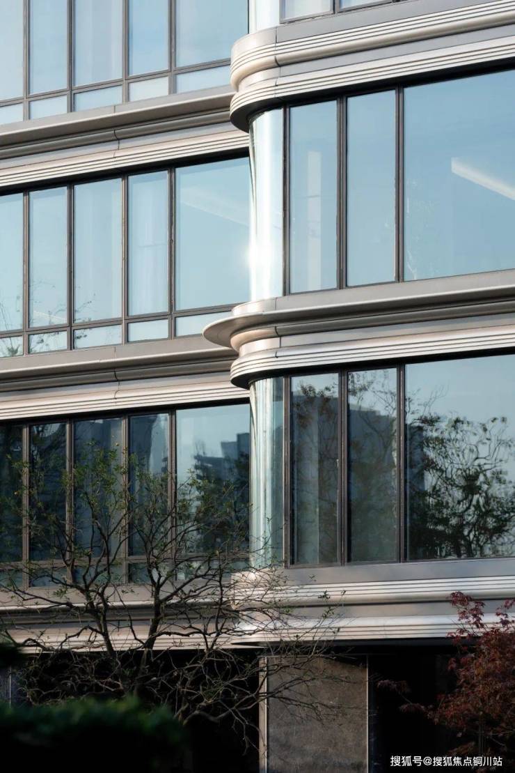 每一条曲线,都是一气呵成地贯通到东南西北四个立面,形成360°的环幕外立面。正是因为伟星采用了「六恒科技系统」,所以不需要做设备阳台,外立面上也就没有像补丁一样的格栅用来遮盖设备阳台。为了配合这样的环幕立面,日本YKK AP系统门窗还专门申请了压线构造、中横料构造、铆接构造这三项专利技术。 对外立面的刻画也精细到每一根线条,每一个门框和窗框,选用了YKK独有的SG级涂层,让窗框线条呈现出细腻的金属质感。