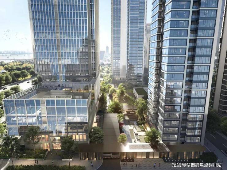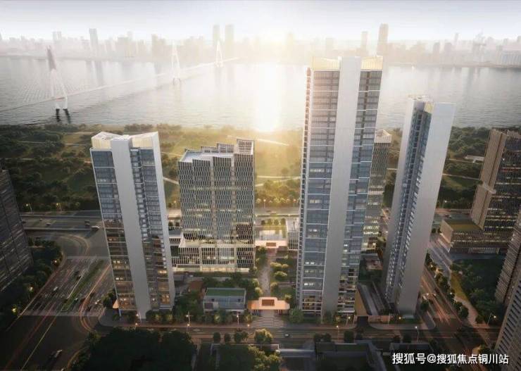 项目一线临江的商办采用“千帆竞渡”为设计理念,通过层叠错落的弧线幕墙和渐变式的立面弧度,呈现出帆船队列的韵律感,既呼应了一线滨长江的地段,又极富美感,造型和颜色在片区“独树一帜”。