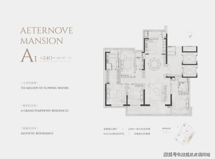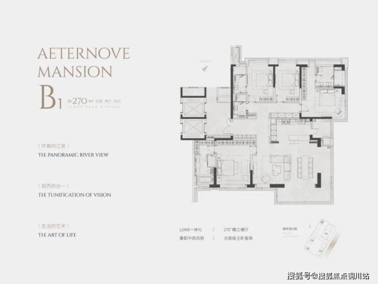 实际使用率90%、双梯独立入户前厅、总裁级主卧套房、LDKB一体化方厅、南向面宽约16.5米。