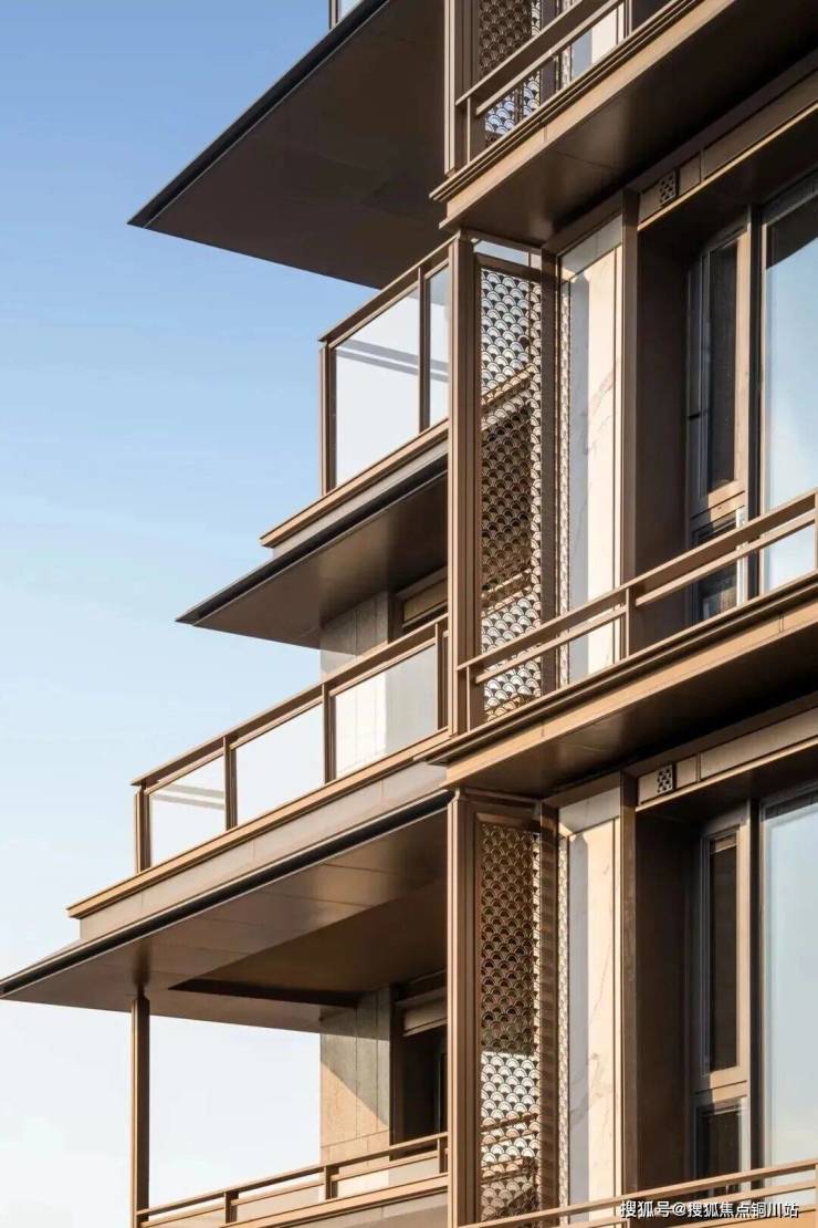 建筑面积约380㎡藏品合院,每一寸空间,都在诉说着东方雅奢的生活艺术。项目化用龙光塔的层层重檐为现代的金属挑檐,既有东方韵味,又具有时代特征。立面以“石中藏玉”美好寓意,通过金属、大理石、香槟色金属线条、石材幕墙、LoW-E中空玻璃,呈现别具一格的风雅意韵,这种对传统建筑的转译,既保留了江南的婉约,又赋予现代轻盈感。