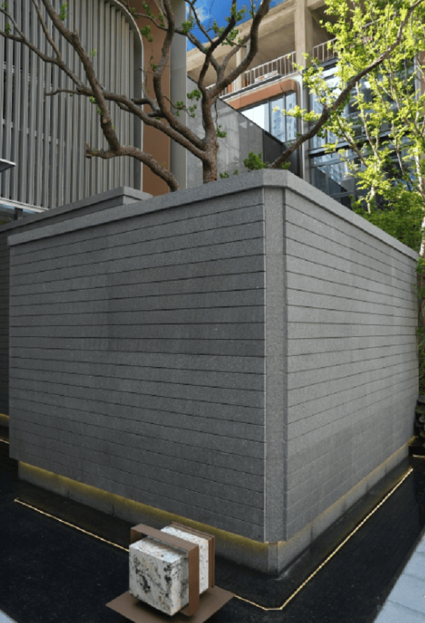 瀑布两侧则是山西特产“山西黑”天然整石,以精密仿形切割工艺,历经标线、加工、吊装等数道工序,这种追求细节的较真精神不由得让人点赞。