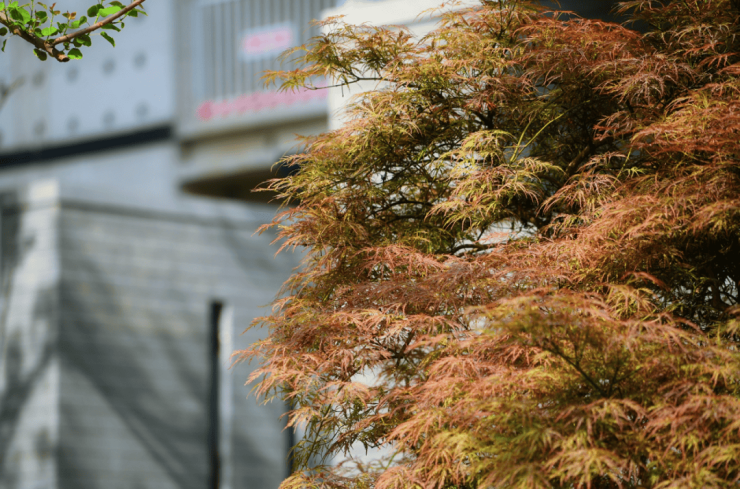 左手边是原产于日本京都的进口羽毛枫,色彩变幻。