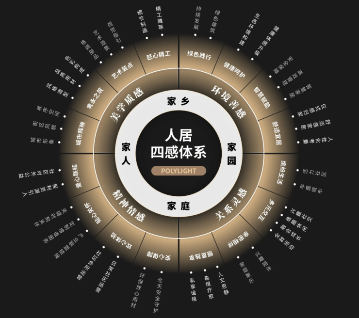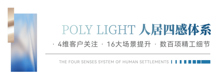 通过对当代人们美好生活诉求的深刻洞察,保利置业将美好人居的价值感知融入家的场景载体之中,注入“美”的灵魂,最终形成1套由4维客户关注,16大场景提升,数百项精工细节组成的夯实产品价值底盘——#POLY LIGHT人居四感体系。