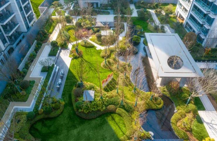 在极其考验品味与工艺的园林景观,则有22项施工标准,从石材铺贴、取水口工艺、园林灯施工,到草皮铺设标准、植物固定工法……甚至外墙石材与种植土面的衔接处理皆有严格施工标准。