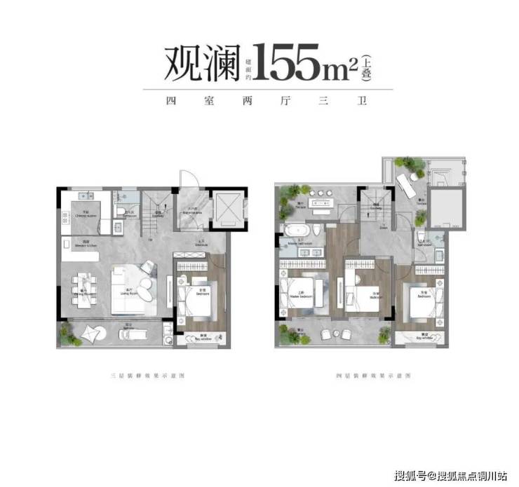 下叠一层拥有一间独立的南向房间,可作为老人房使用。所有卧室全部朝南,光线充沛,通风更好,住起来舒适性更高。