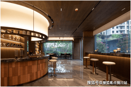 大堂里规划了休息洽谈区,邻里交谈及会客也是典雅的复古气,有满满的归家仪式感,也有服务接待兼水吧的高级服务感。