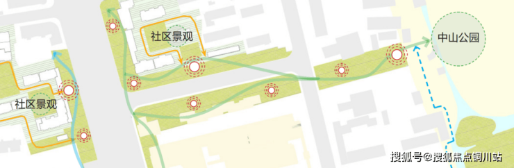 贯通的绿化带与多点放置的口袋公园及公共绿化空间;