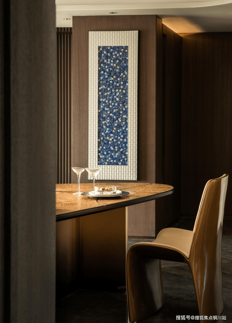 项目探索空间的居住逻辑,创造出隐奢的场域。空间中材质、奢石、皮革、琉璃、金属展现出丰富的肌理,氛围与艺术的叠加,表达了多元与包容的城市印象,因此奢华也呈现出不同的层次感。