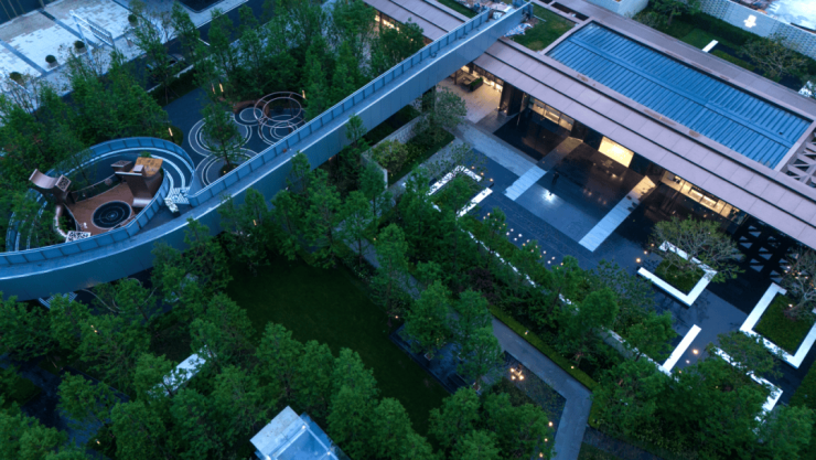 以纽约High Line Park(高线公园)为灵感,以高空漫步连廊有机链接三个地块和“森系物语+都市客厅+岛屿归心”三大主题景观,实现内外资源的共享、社区与城市的交融。