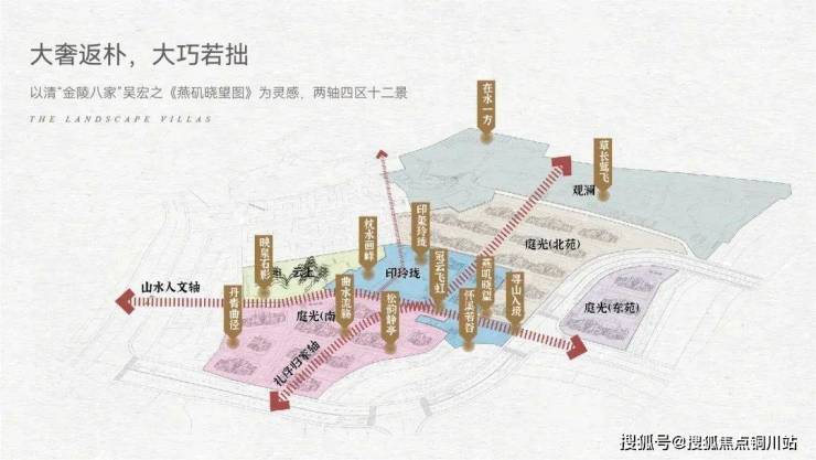 整个项目还以清代“金陵八家”之一的吴宏大师名画《燕矶晓望图》为引,再以现代手法转译,形成两轴四区十二景的山水画卷,将燕子矶人文历史表达得淋漓尽致。