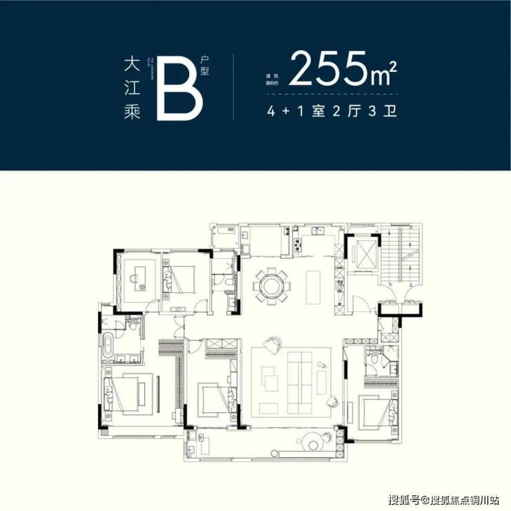 ●建面约255㎡及以上户型,主卧双开门且带独立书房;