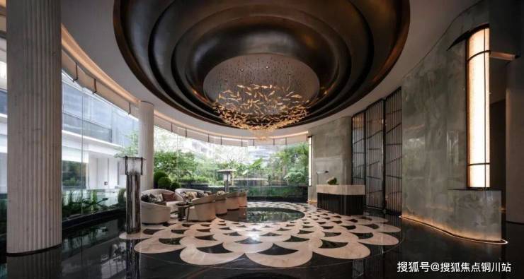 这是华中第一,中国第二落差的豪宅室内飞瀑,“飞流直下”像是将黄金水道滚滚“财源”引入大堂。