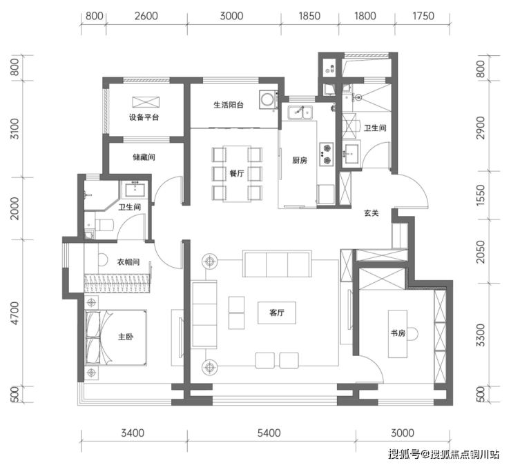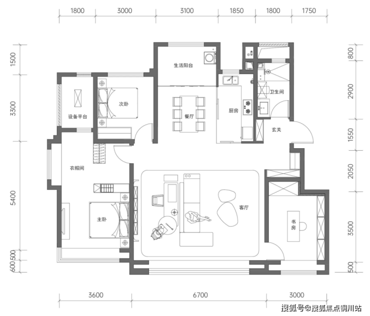 洋房约117m²三室户型,从户型设计、到室内空间细节处理都是片区中的创新型产品。超大面宽,客厅开间达到约5.4米;独立餐厅,与厨房并行布局,实用性强;北侧带有生活阳台,与餐厅相连使整体空间更为通透;采用烟道外置创新,保留了灶台的完整性,提高了厨房的使用面积,再加上超高综合得房率,天生自带“爆款”基因。