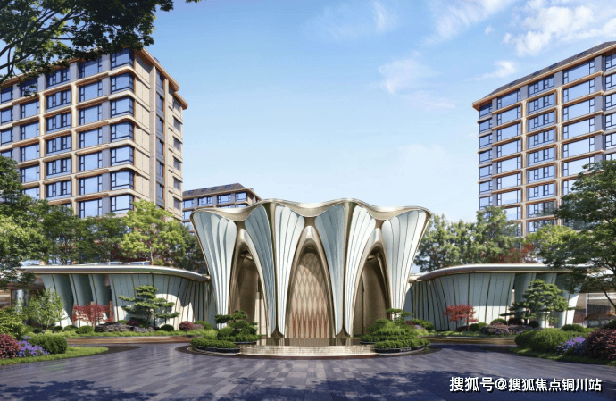 整个社区最大的建筑亮点,非南侧入口约12m高的先锋艺术门楼莫属。整座门楼被打造成艺术之岛,名为“绽放”,呼应项目“都市中流动山谷”的精神寓意,以柔美花朵绽放的姿态,展现了生命力和律动感,似在迎接业主的归来,也给人极强的视觉冲击和深刻记忆,这样极致艺术感的大门,放眼天津市场,也是稀有物种。