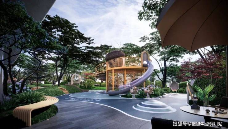 另一处景观场域森岛派对与都荟公园自然衔接,森林、水系、台地错落,形成立体的自然野趣,特别打造的下沉卡座区域形成独立的“小包厢”,既可静观水景,也可以成为林荫树下聚会party的私享场域。