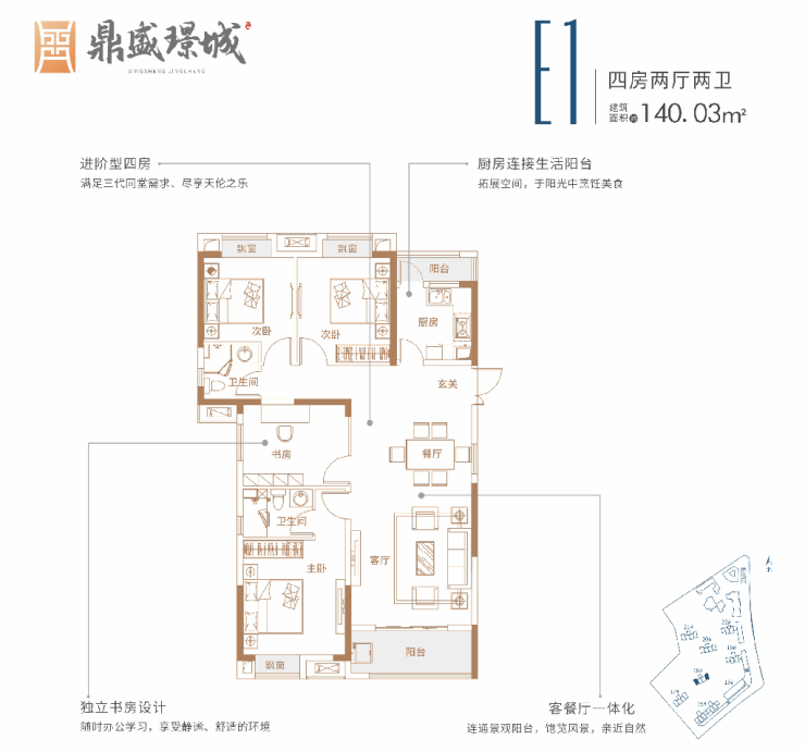 匠造101-140㎡品质户型,满足不同家庭居住需求,换新人居生活,阔绰尺度客厅,景观飘窗设计,宽阔观景阳台,与轻风阳光共舞,品味都荟人生。