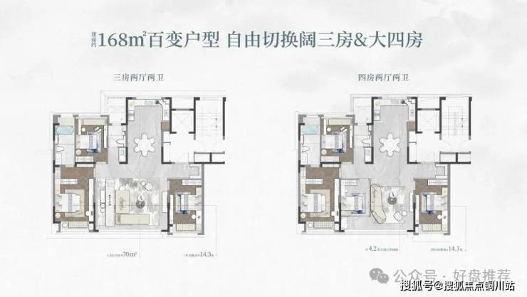 精装湖景平邸——以“灵动通透、全周期适配”为导向,建面约168㎡户型设计了2款空间方案,既可选择大三房、也可享受阔四房。“大面宽、短进深”的格局显著提升了空间的通透感与采光面,并结合部分户型的景观优化,实现推窗见湖的视觉延伸。灵活转换的“百变”空间设计,能从容应对从二人世界、三口之家到多代同堂的家庭结构变化。国际一线精装品牌与独立电梯厅的配置,则在细节中夯实了归家仪式感与日常生活的品质基底。