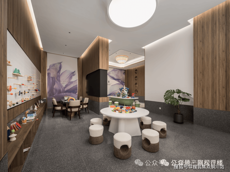 三大岛屿架空层:设置有为小业主打造的儿童游玩区、四点半学堂,为长者准备的棋牌室和茶室,还有为精英业主配置的健身中心等悦己场所。