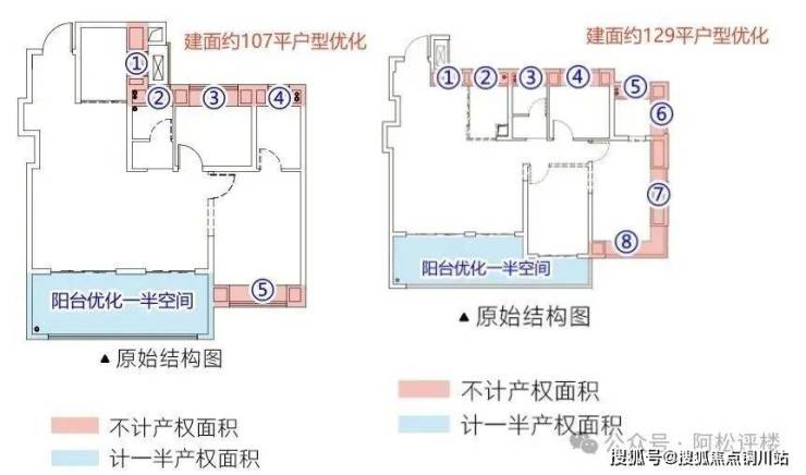 优化面积上,南向大阳台可优化一半空间,5处飘窗可全优化,优化后套内得房面积约97平,综合得房率约91%!