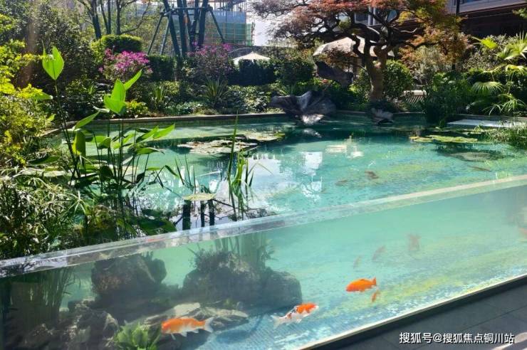 绿城园林古建团队通过马赛克拼花、亚克力观赏面、净化系统、水下造景等多个步骤,助力项目打造家楼下的“锦鲤池”,并邀请专业厂家深化方案,水质可达水族馆净化标准。
