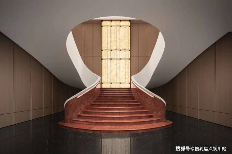 富有设计感的楼梯,是酒店式空间的一大亮点。楼梯踏步为弧形石材,栏杆则为双侧异形,项目团队精研5克拉超薄石材工艺,采用纳米技术进行加工切割,以轻量化处理高水准呈现设计效果。