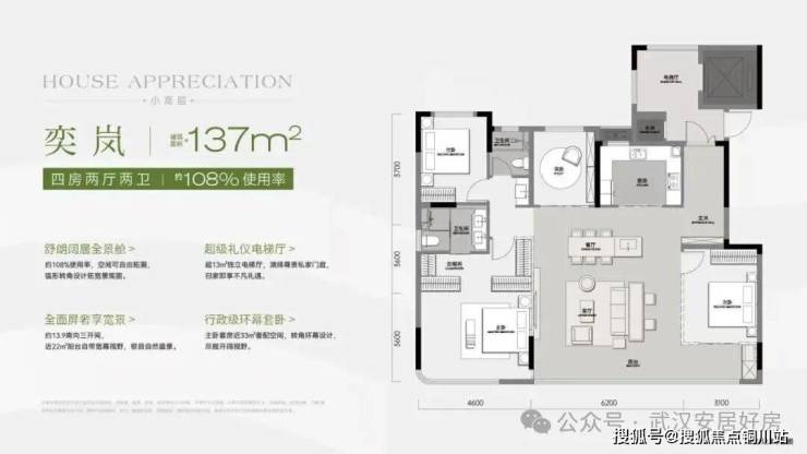 建面约137㎡四房两厅两卫,优化后约108%使用率: