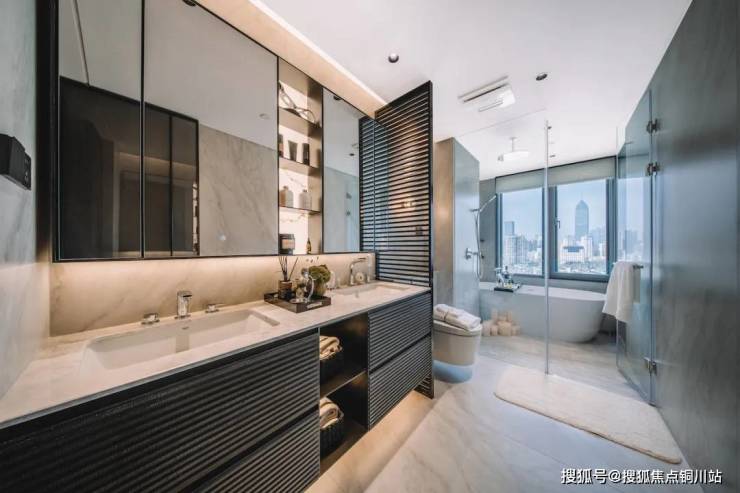 瑞士劳芬 + 德国高仪的卫浴、柏厨的镜柜、松下的暖风机,甚至贴心定制的美妆冰箱,全选用了高配。室内 " 豪宅三大件 " 大金中央空调、兰舍新风、菲斯曼地暖系统配置拉满,增配康丽根全屋净水、华为智能家居。