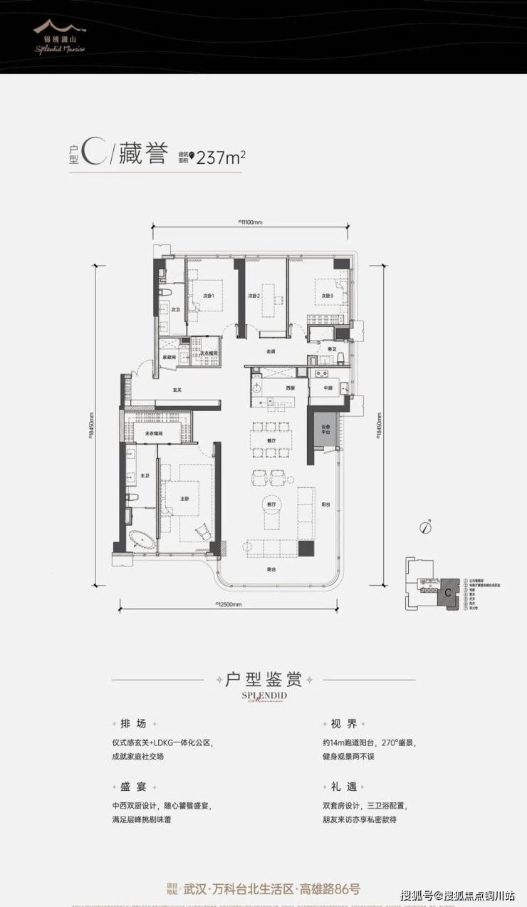台北路板块第一个新房均价破3万项目、武汉第一座“翡翠系”——万科翡翠国际;第一个清一色的约185平大平层项目——万科阅庐;第一个14户、约210平大平层项目——万科云庐。如今,它又创下一个“第一”:第一个全盘户型约238平项目——万科锦绣湖山。