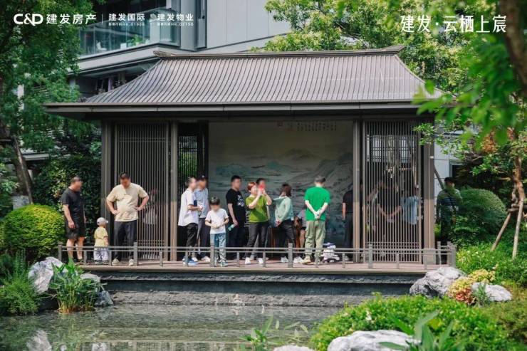 养云静舍,三面大面铝板立面、中式挑檐与云纹……将东方大美演绎的淋漓尽致。三进式园林,中式亭台水榭,移步异景,深得人心,大家一走进就忍不住驻足拍照,更有人感叹:以为只有豪宅院子,才会将中式园林做的如此美,你们建发房产真的在产品上下足了功夫。