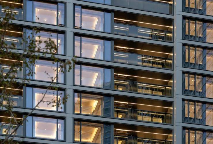 这样做的目的是,让房子外形更通透。对于绿城而言,几乎用了别人家外立面“两倍”的玻璃,建筑外立面材料、人工的成本则随之大幅增加。