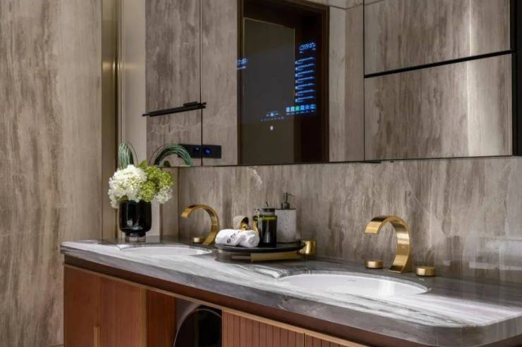 这样大面积铺装奢石,就是让地面、墙面展现浑然天成的温润美学。豪不夸张地说,黄浦湾堪称武汉顶豪奢石“博物馆”。