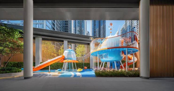 从园林里看不到房子的内部,从房间里俯瞰又看不到园林里的邻居。园区的私密性被项目设计者优先考虑。C区的园林与架空层,增设了露天影院,定制了儿童活动区、儿童主题架空层空间与四点半学堂,扩容了健身房等运动空间。