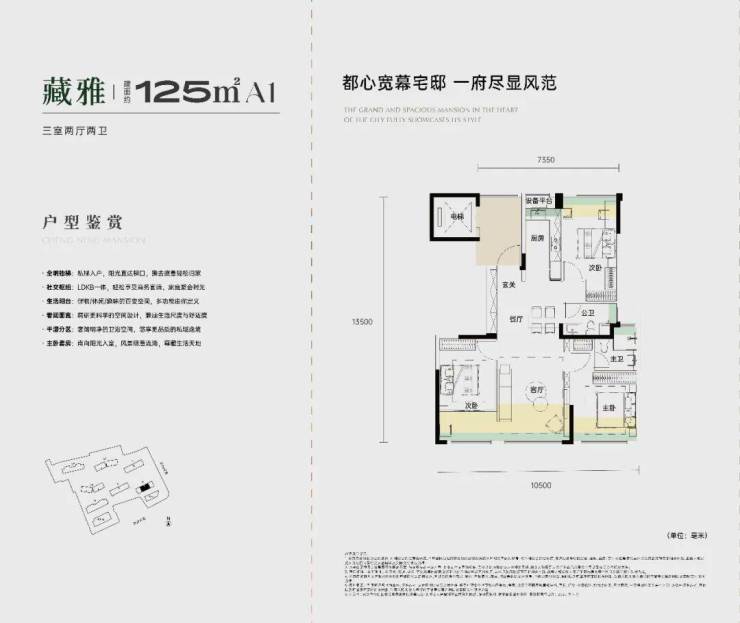 首次推出的建面约 115 、 125 ㎡王牌户型,更是将二七滨江千万级豪宅打磨的产品思维注入到承宁府中,创新融入全景舱设计,全系标配光厅入户,给足更多的生活空间和想象,邀都市繁华与自然光影入室。同等建筑面积,收获远超周边竞品的阔绰实用空间。