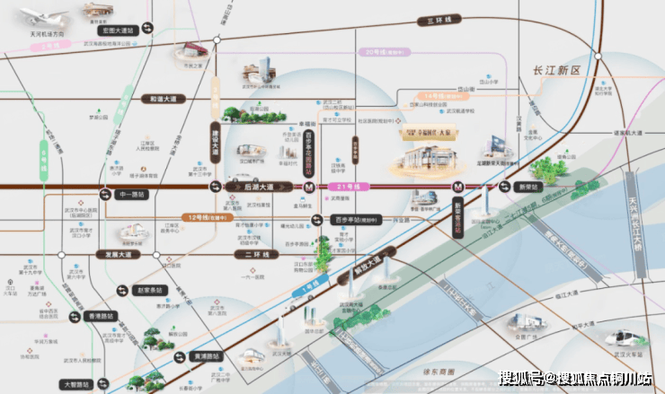 步行范围汇集轻轨1号线、地铁21号线和在建12号线三条地铁,无论是通达汉口核心各大繁华地,还是畅游武汉三镇,都有线路适合你!