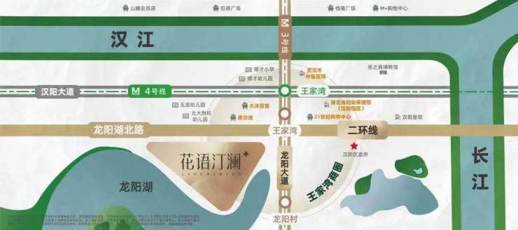 环线位置:项目位于武汉二环旁,墨水湖北路与玉龙路交汇处,东侧紧邻龙阳湖公园,出门即上二环线,可畅达武昌内环,通过汉江湾桥、知音桥、古田桥、月湖桥等可直达汉口核心。