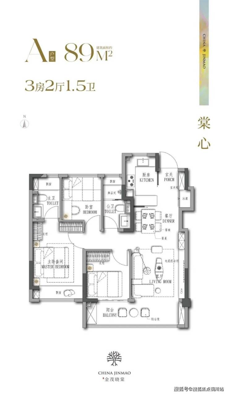 89平米三房,又创新地设计了1.5卫,家庭内部早晚不必排队使用卫生间,大大增加了居家生活的方便程度。