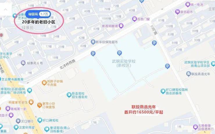 都是紧邻武钢实验学校,都在青山第一梯队的中小学附近,联投燕语光年全新楼盘均价仅约15500元/平,居住品质与绿景苑等二手房相比,完全是天壤之别。