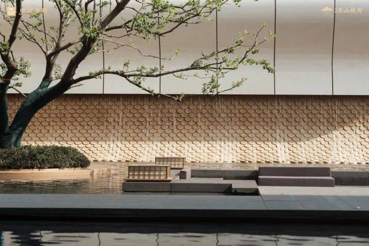 与山和鸣,引水入园。步入门庭之后,下沉式水幕缓缓流淌,如同藏在时间里的褶皱,为当代人带来一份慢慢舒卷的松弛感。与此同时,项目将金陵人文中的金箔、云锦、金鳞等元素融入建筑空间之内,于可游可聚可赏之间,让一切如同艺术品般可被阅读。