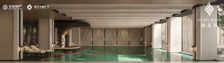 以及全南京首创的恒温泳池水吧,即利用高差在泳池边设计下沉式水吧卡座。从而实现了在泳池里开派对的社交生活场景,将媲美奢华度假酒店的松弛感搬进了小区。