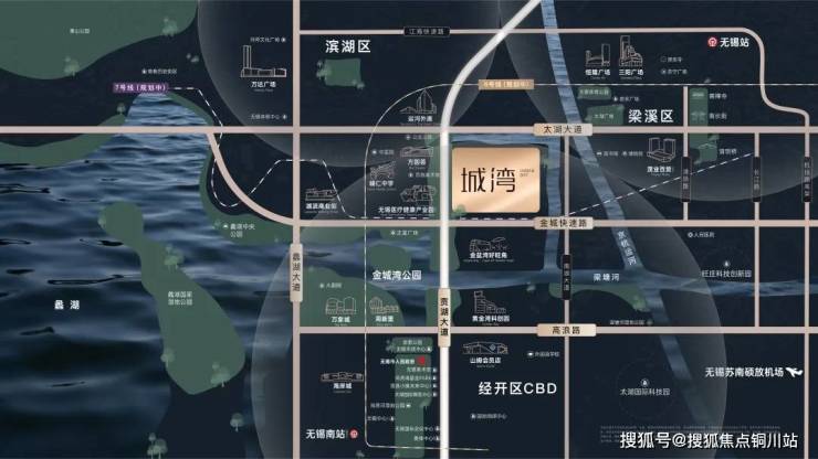 立体交通:贡湖大道、蠡湖大道、太湖大道、金城快速路等路网通达三区;紧邻规划中地铁站点。