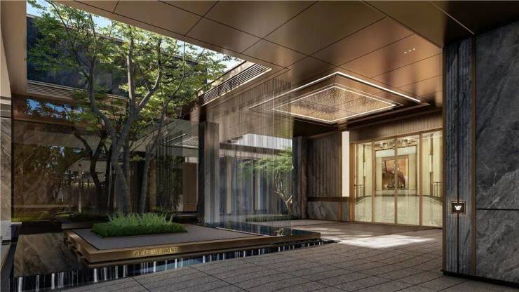 在建筑设计上,越秀天悦文华采用类公建化美学立面,以高级灰为主色调,打造出现代奢雅的建筑风格,重新定义了区域的人居美学高度。项目拥有近百米的城市美学界面,近 100m 交互式景观前序迎宾界面,不仅提升了城市界面形象,还让业主在归家途中便能感受到尊崇与惬意。约 52mx7m 的超宽归家大堂,气度非凡,尽显排场;酒店式迎宾环岛水景,为业主缔造尊崇礼序;约 3.6m 挑高归家大堂的 “星空顶” 礼遇光厅,让仪式感在细节处尽显。此外,项目还精心打造了 6 大东方主题院落,以 “留园” 式江南庭院为蓝本,配合洄游式观赏动线,将古典水景、对景、障景等元素进行现代式应用,营造出优雅的意境,让业主仿佛置身于诗意的画卷之中。独特造型的绿野仙踪主题乐园,为孩子们提供了更贴近自然的游玩体验,打造出 “家门口的游乐园”,让童心童趣自由徜徉。