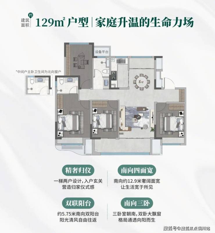 南向四面宽设计,引阳光肆意流淌;约5.75米南向双联阳台,以IMAX级视野揽尽四季风华,清风与鲜氧在此自由穿行,成就家庭社交、茶叙观景的多元主场;三卧朝南,双飘窗设计,欣赏晨曦与星光,诠释“向阳而生”的居住哲学。