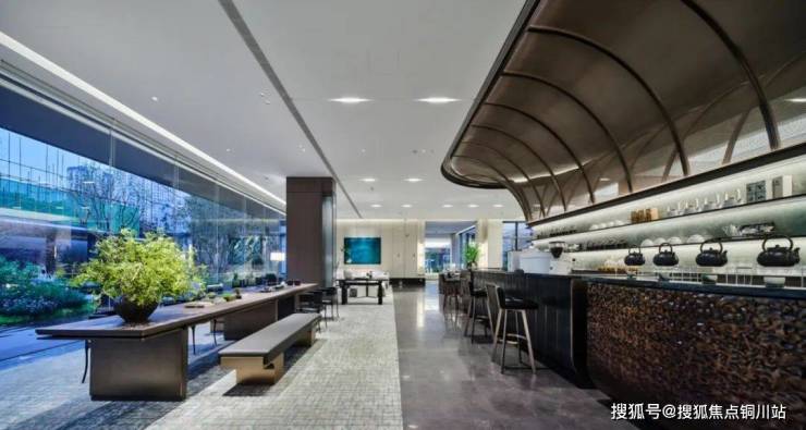 以《西园雅集》为空间情绪蓝本,秉承“将社交置入静谧”的哲学,在三进归家的东方游园过程中,以镜面水景嵌套四季酒店式度假场景:约2000㎡水域倒映天空树影,水下茶席与大面积落地玻璃交织对话“曲水流觞”,复刻北宋美学生活的极致和雅致,以都市度假场景营造,为2848位业主,在繁华都市中造一座自然岛屿。