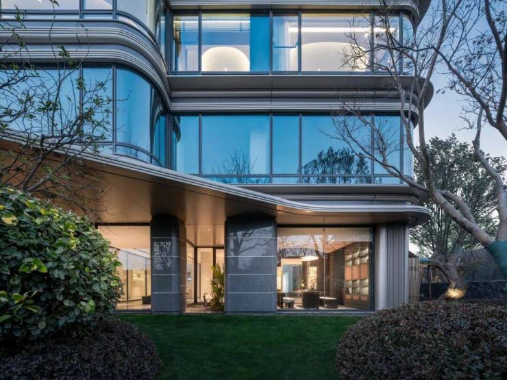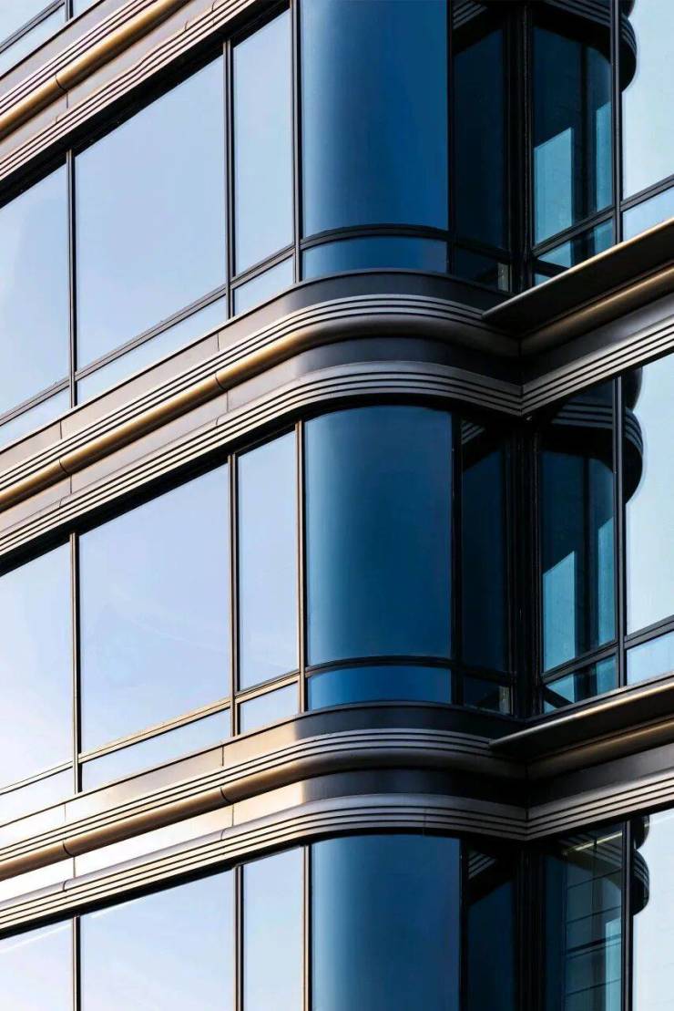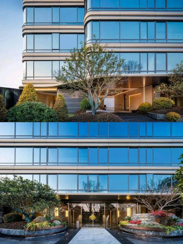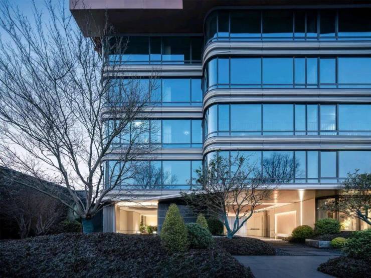 外立面也很有细节,由360°钻感环幕玻璃+金属线条外立面组成,在马鞍山属头一个。360°环幕玻璃外立面,大量采用LOW-E玻璃和铝板线条,成本投入还是舍得。