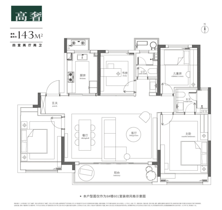 143户型超大南向面宽,约7.2米超大天幕社交宽厅,直通IMAX宽境阳台,视野采光通风一绝;经典四叶草户型,卧室位于各个角落,家庭成员生活起居互不打扰;主卧套房设计,尺度阔绰,私密性好。
