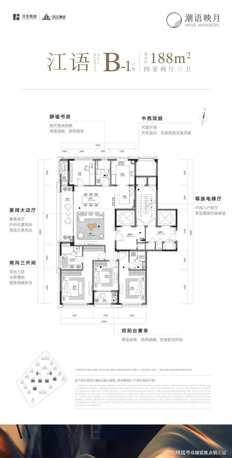 LDKB阔绰联厅+奢华主卧套房+尊崇电梯厅等,这个户型大而得当,几无浪费面积,很好地平衡了尺度、尊贵感和功能性。
