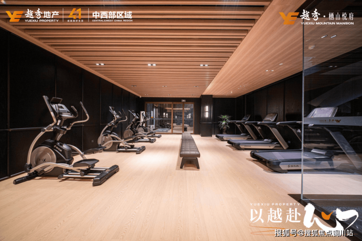 健身房采用天花格栅吊顶、地面运动地板、墙面隔音墙板材料进行装饰,还贴心设有更衣室,健身器械均为国际一线品牌舒华,跑步机、椭圆仪等设备一应俱全。还有专门为女性业主打造的一个瑜伽房,下楼即可健身运动。