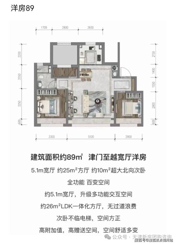89㎡:单价1.95-2.05万