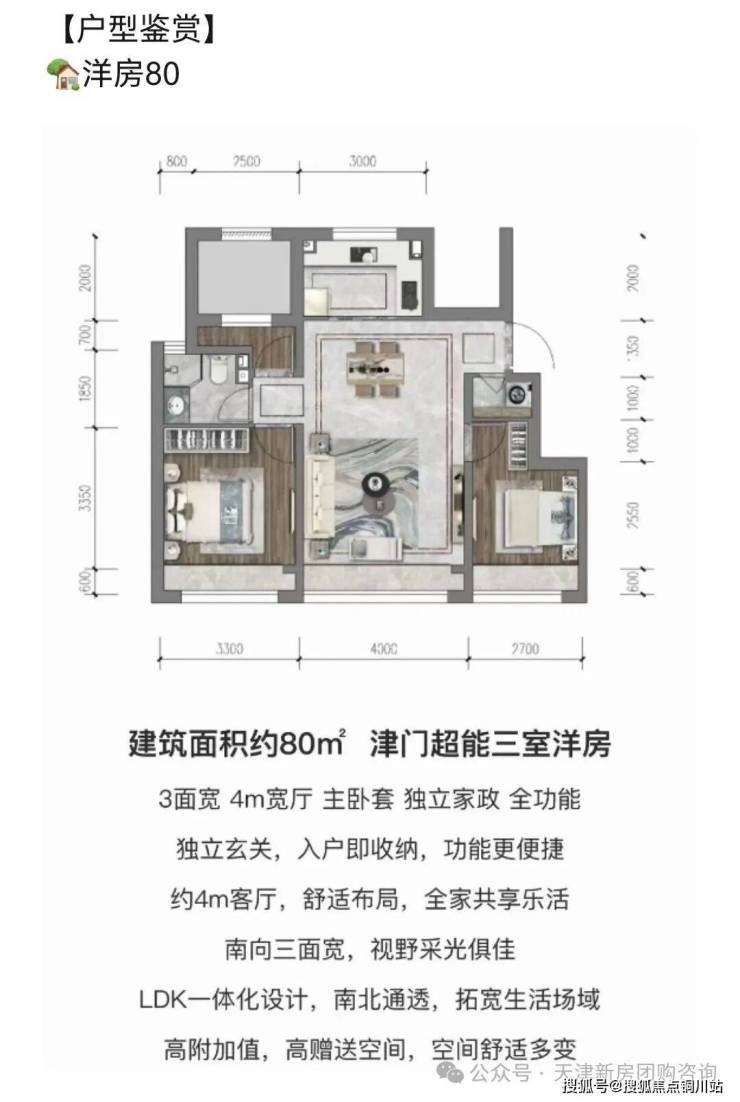 80㎡:单价1.9-2万
