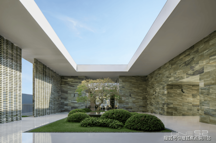 室外每一株绿植都经过精挑细选,每一块天然石材的灰度都精确控制,质感扑面而来。室内硬件铺装、氛围灯光、竖向线条都被很好地融合在一体,曾经被标榜奢华的鎏金描边与水晶吊灯,在这里统统让位于建筑最本真的语言。